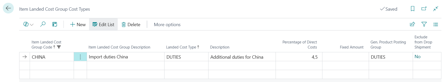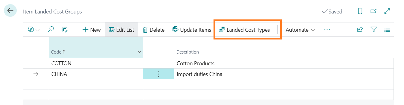 Just as for vendors, Landed Cost types can be defined for each Item Landed Cost Group: